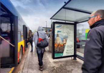 Citylight umieszczony w jednej z dwóch wiat przystankowych bezpośrednio przed terminalem – hala przylotów